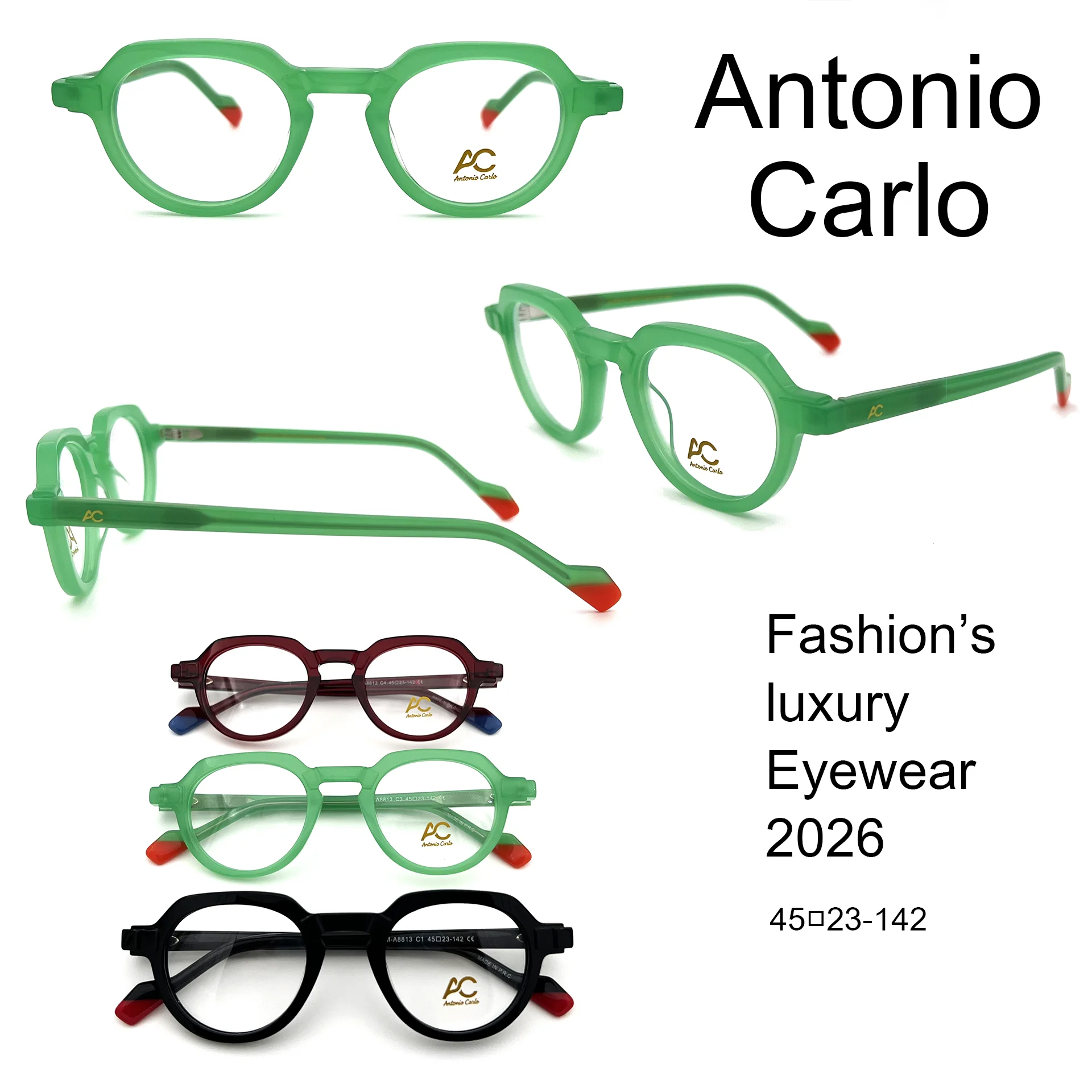 عینک طبی آنتونیو کارلو با فریم گرد و رنگ‌های جذاب مشکی، زرشکی و سبز طراحی شیک و راحتی بی‌نظیر را برای استفاده روزمره ارائه می‌دهد.